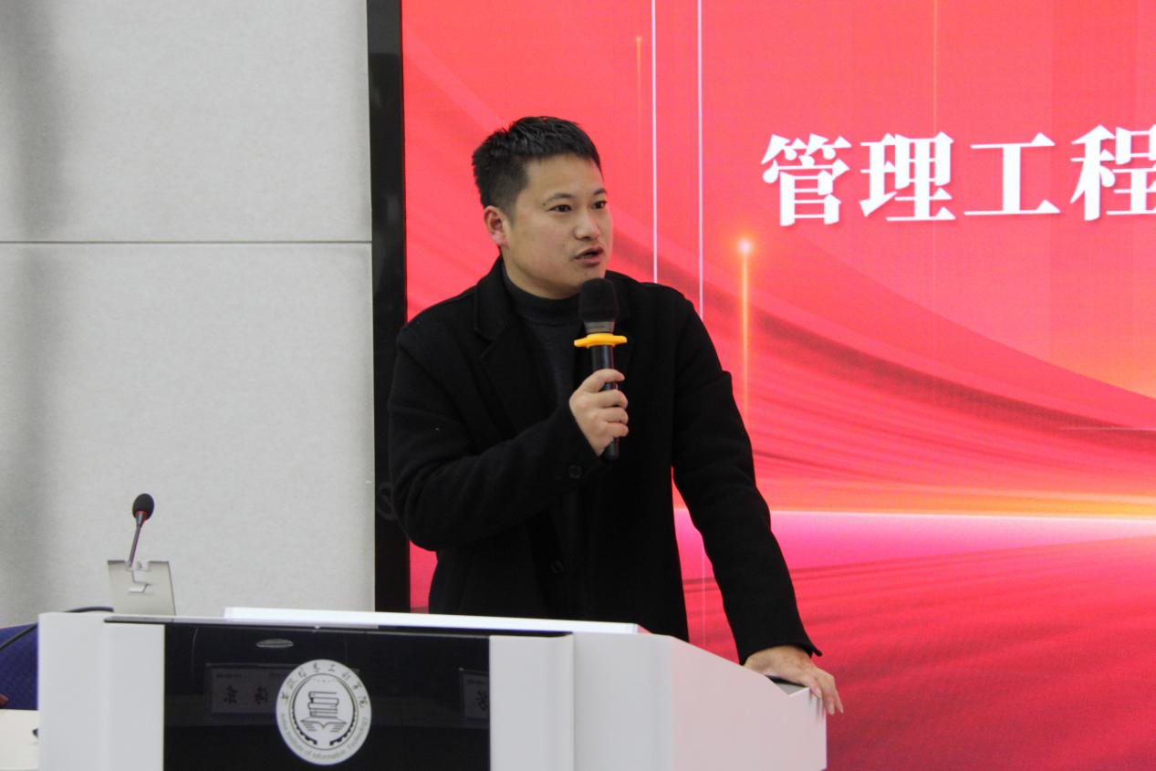 逐梦青春跟党走,砥砺奋进建新功。11月12日,管理工程学院第九次学生代表大会在博行楼E202顺利召开。管理工程学院党总支副书记韩海东、党务秘书卫雨婷、团总支书记陈效晨、辅导员黄玲玲,与全体学生代表、学生委员会成员共同参加本次会议。(图为会议现场)大会在庄严的国歌声中拉开帷幕。韩海东发表致辞,以“聚力、担当、致远”三个关键词为核心,向全体同学寄予殷切期望。他强调,新时代青年的成长始终与国家发展、学院建设同频共振,同学们的支持是学院高质量发展的不竭动力,更是汇聚成育人事业的磅礴合力。韩海东指出,青春的担当不仅是立足校园的责任践行,更是面向时代的使命承接。希望同学们以理想为帆、以实干为桨,将个人成长融入学院发展大局,主动配合老师落实各项工作,在学风建设、校园文化、社会实践等领域勇挑重担,以青春之我、奋斗之我为学院发展注入鲜活动能。他鼓励全体同学以此次学代会为契机,厚植家国情怀、锤炼过硬本领,在追求卓越中诠释青春价值,在携手共进中书写学院发展新篇章,让青春在为祖国、为人民、为学院的奉献中焕发出绚